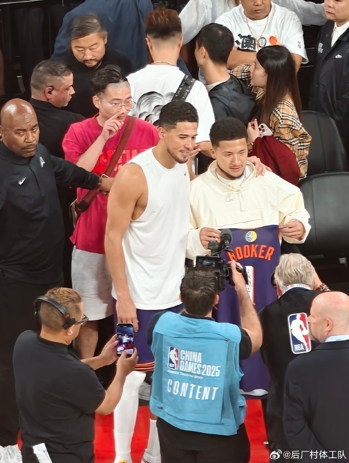 幾分相似?布克賽后與其模仿者“中國布克”合影 并贈(zèng)送簽名球衣