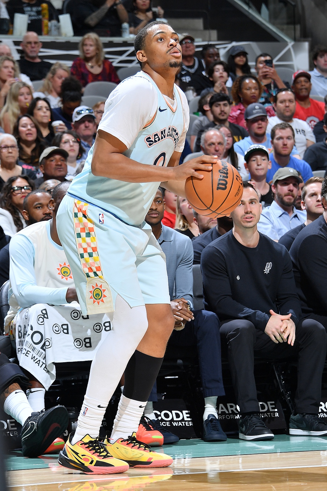 凱爾登-約翰遜在2019年NBA選秀中以首輪第29順位被馬刺選中,生涯至今6個(gè)賽季均效力于馬刺。