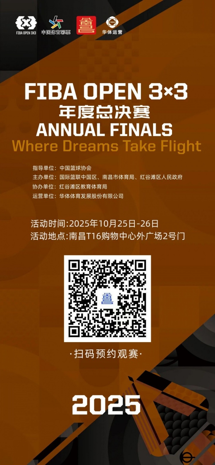 2025年10月25日-26日,南昌T16購物中心廣場即將迎來一場屬于全民的籃球狂歡——2025 FIBA Open 3x3年度總決賽!經過全國百城激戰(zhàn),32支最強隊伍集結滕王閣畔,爭奪全國冠軍榮耀與參與更高級別的全球賽事的資格!本屆賽事融合頂尖競技、城市地標與街頭文化,邀你共同見證!以下六大亮點,帶你一睹為快!