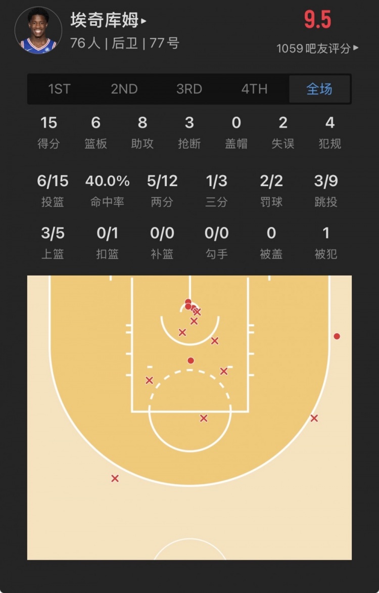76人探花秀 VJ-埃奇庫(kù)姆 登場(chǎng)39.6分鐘