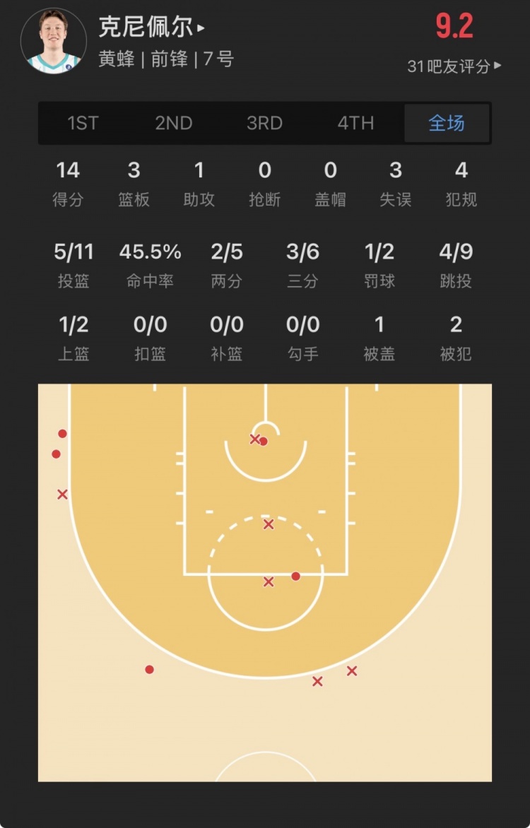 黃蜂4號(hào)秀 康-克尼佩爾 登場(chǎng)30.2分鐘