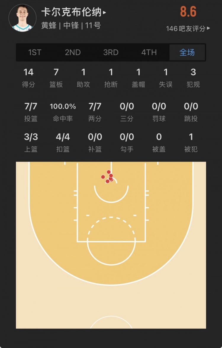 黃蜂34號(hào)秀 瑞安-卡爾克布倫納 登場(chǎng)26.1分鐘