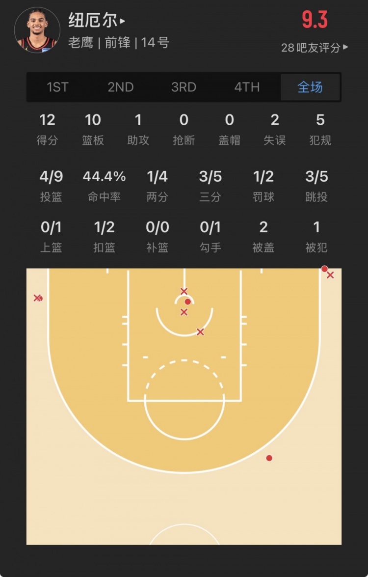 老鷹23號(hào)秀 阿薩-紐厄爾 登場(chǎng)24.8分鐘