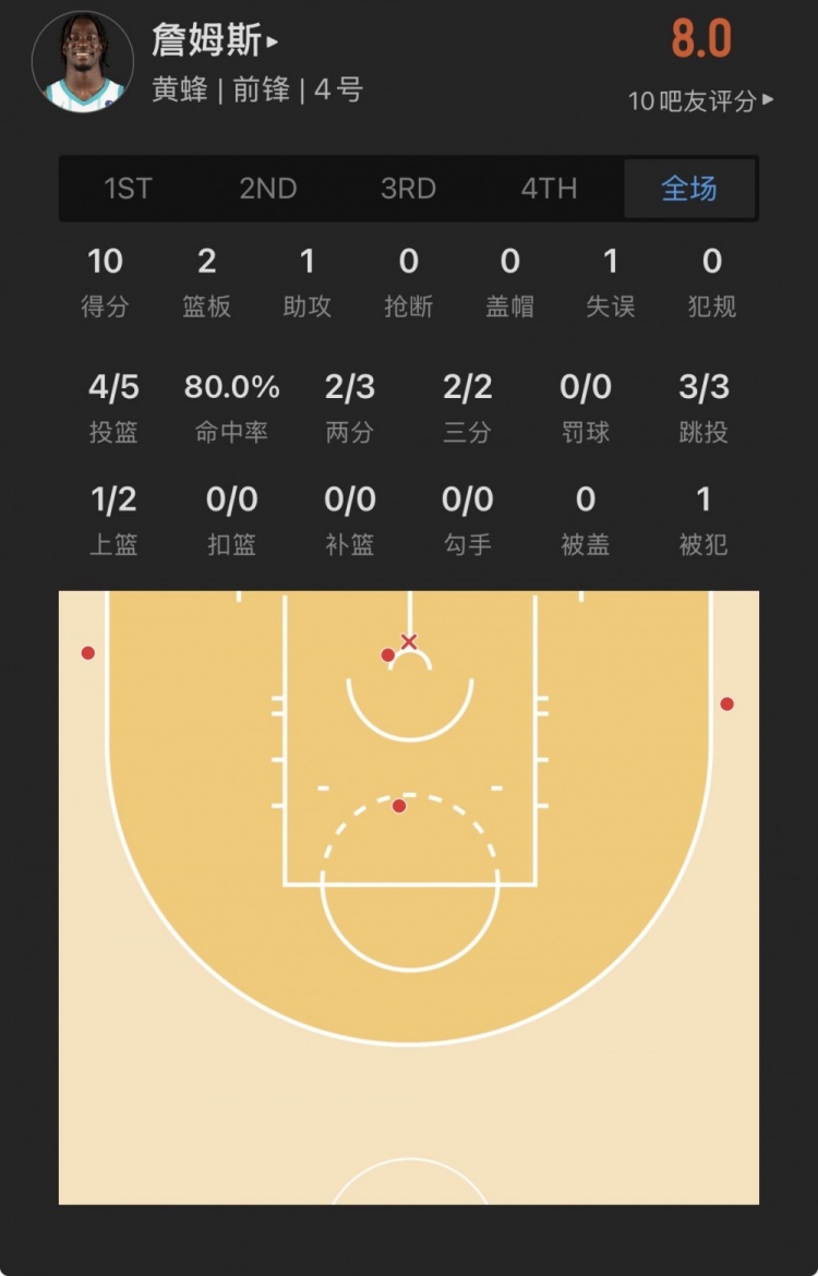 黃蜂33號(hào)秀 賽恩-詹姆斯 登場(chǎng)18.8分鐘