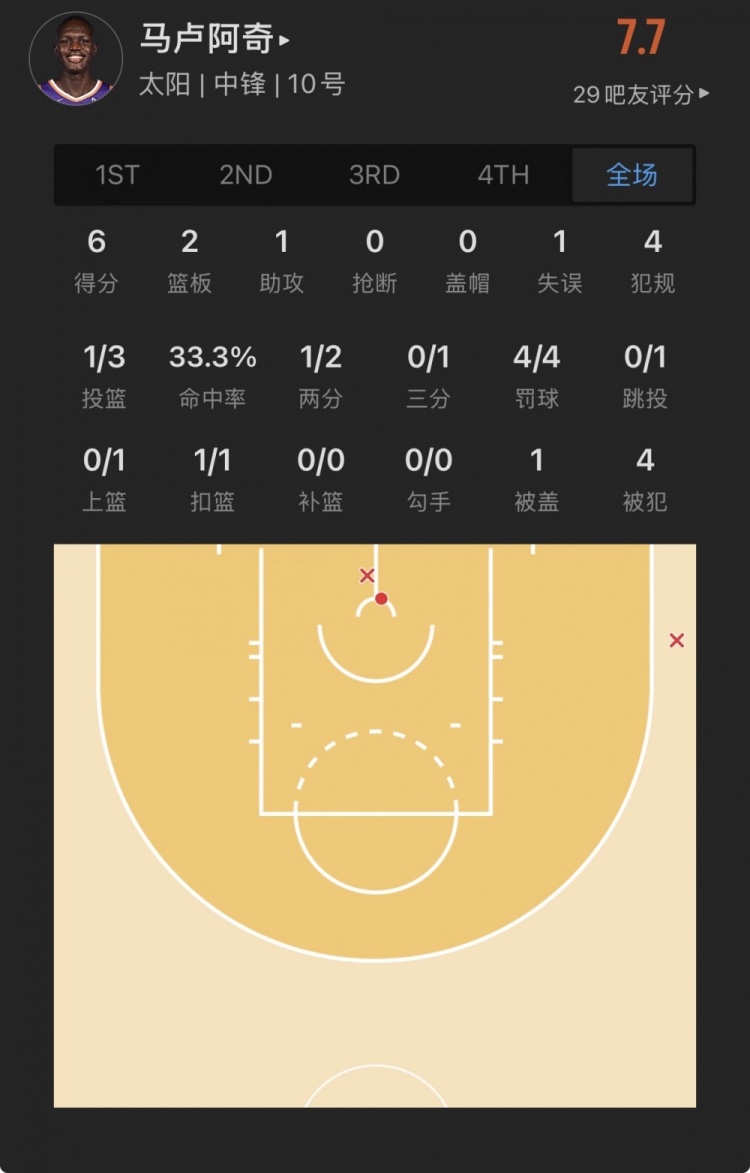 太陽(yáng)10號(hào)秀 卡曼-馬盧阿奇 登場(chǎng)12.7分鐘