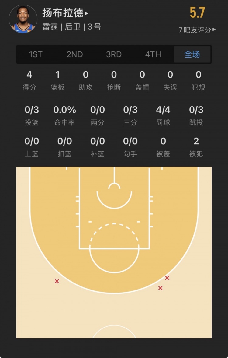 雷霆落選秀 克里斯-揚(yáng)布拉德 登場(chǎng)10.5分鐘