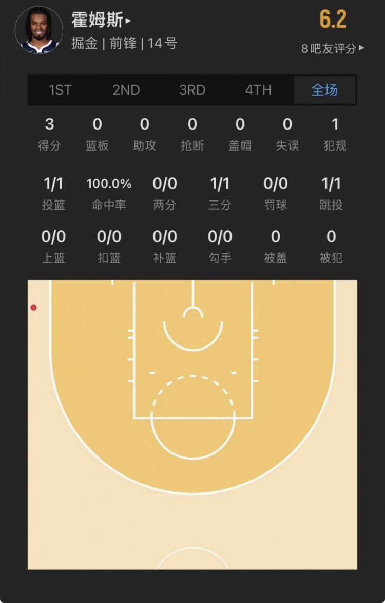 掘金上屆22號(hào)秀 達(dá)龍-霍姆斯二世 登場(chǎng)3.0分鐘