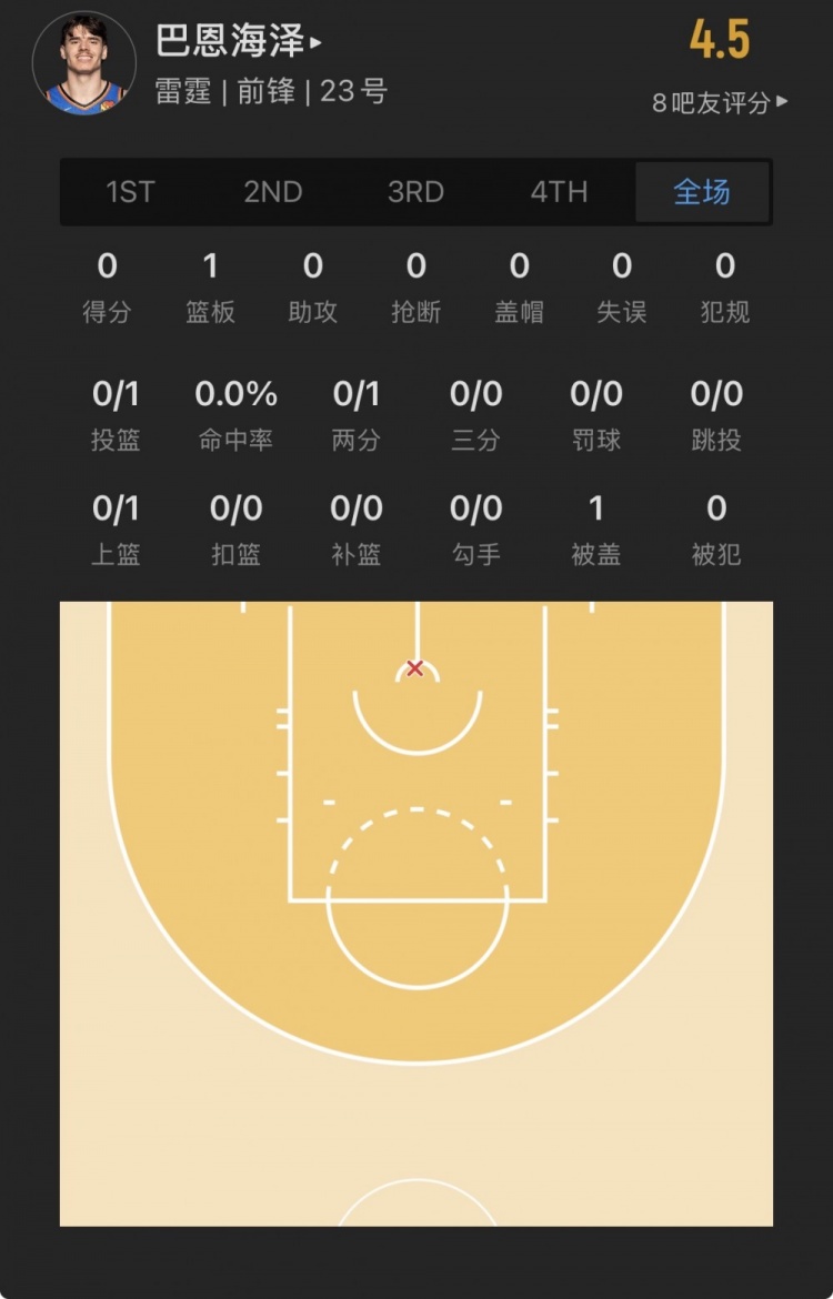 雷霆44號(hào)秀 布魯克斯-巴恩海澤 登場(chǎng)10.8分鐘