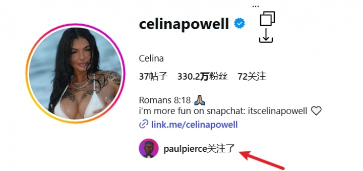 Celina Powell是一位模特、演員,她因此多次公開蹭多名說唱歌手的桃色熱度而走紅,皮爾斯也是她的粉絲之一。
