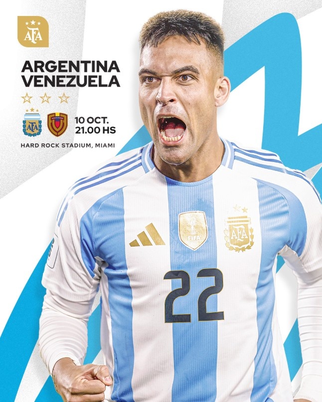 10月10日訊 北京時間周六早間的國際足球友誼賽,阿根廷將會和委內(nèi)瑞拉交手,這場比賽會在邁阿密的硬石體育場進(jìn)行。目前,阿根廷國家隊發(fā)布了本場比賽的預(yù)熱海報,勞塔羅單人出鏡。本次國際比賽日,世界杯衛(wèi)冕冠軍阿根廷將會進(jìn)行兩場友誼賽,除了對陣委內(nèi)瑞拉外,他們還要和波多黎各交手。
