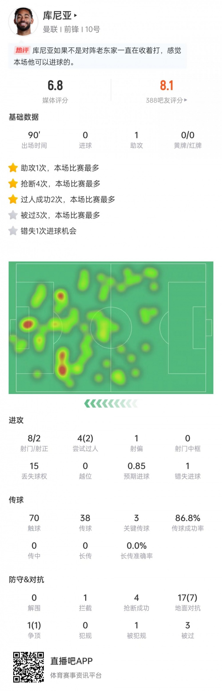 庫尼亞本場(chǎng)比賽數(shù)據(jù):