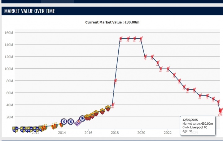 12月09日訊 德轉(zhuǎn)今日更新英超球員身價,處于風(fēng)口浪尖的利物浦前鋒薩拉赫身價由4500萬歐元下跌至3000萬歐元。