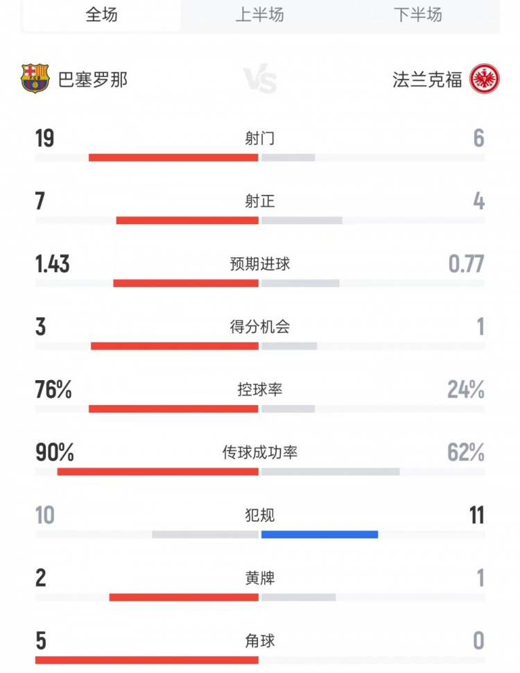 巴薩vs法蘭克福數(shù)據(jù):