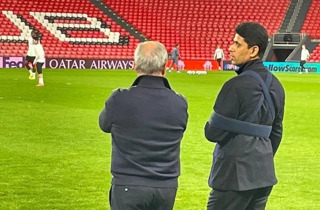 在體育總監(jiān)路易斯·坎波斯的陪同下,納賽爾于圣馬梅斯球場(chǎng)的草坪邊觀看了球隊(duì)訓(xùn)練。兩位高層毫無顧忌地在密切關(guān)注訓(xùn)練過程的記者附近交談。就在巴黎圣日耳曼在畢爾巴鄂訓(xùn)練的幾個(gè)小時(shí)前,俱樂部的投資集團(tuán)宣布通過收購一家比利時(shí)俱樂部來拓展業(yè)務(wù)。