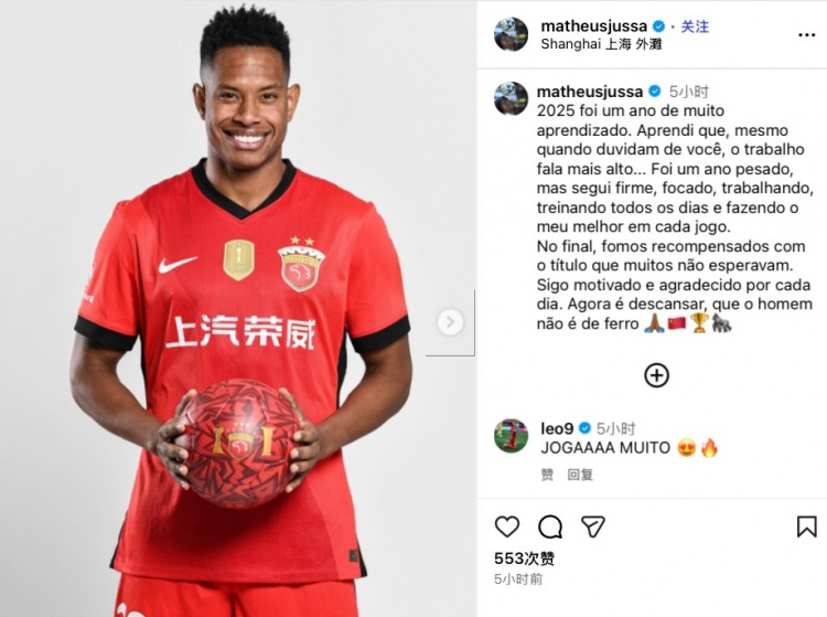 今日海港外援茹薩在社媒發(fā)文,對賽季表現(xiàn)進行總結(jié),他寫道: